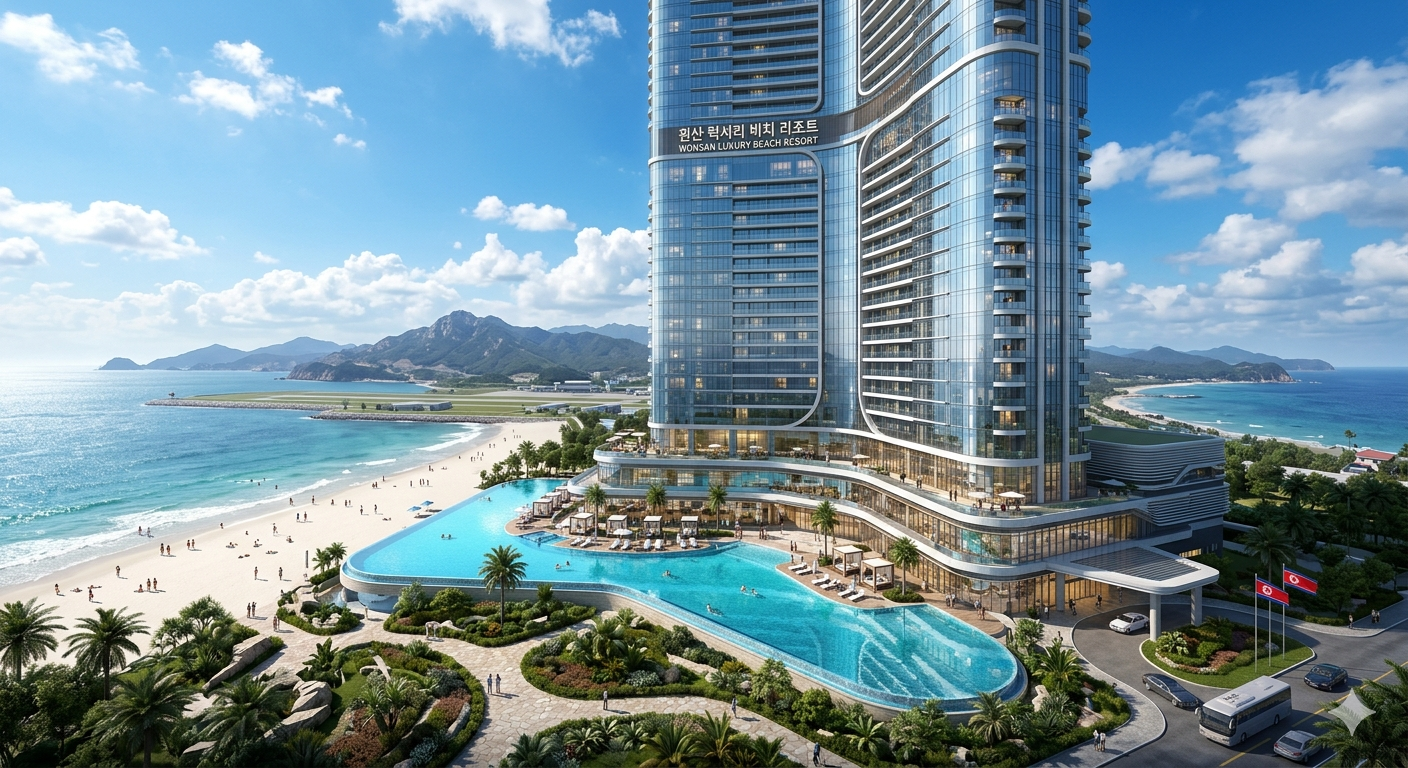 宏观背景: 朝鲜政府将元山地区定位为“国际旅游城市”,并大力推动基础设施建设。元山地区的开发是朝鲜对外开放和经济转型的重要窗口。 区位优势: 项目位于元山旅行者码头旁,是游客进出元山的门户位置,拥有无与伦比的海景资源和交通可达性。 旅游资源整合: 项目周边100公里范围内聚集了金刚山(世界级名山)、马息岭滑雪场(国际级滑雪度假地)、松涛湾海水浴场等优质景区,具备打造区域旅游集散中心的天然条件。